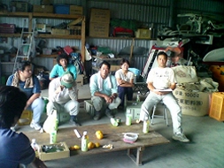 毎月2〜3回程度、まとめ役である菊知さんの通称「作戦本部(研究棟)」と呼ばれる倉庫で、グループ全員が必ず集まり、栽培方法の勉強や研究、ライバル産地の作況、農産物の市場動向などについて議論をしています。