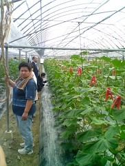 畑を見せてもらった桑畑さんへ、今現在の取り組みを聞くと・・・・ 「定期的に会議があるため、情報共有ができ、自然と切磋琢磨できる。また、心強い味方、仲間がいるのも頼もしいかぎりです。」 さりげなく、1株当たりの収穫量を訪ねると・・・・ 「平均より若干少ないかな。僕は量より質、虫が出てもそれだけキュウリが美味しい証拠だと思い敢えて薬はまきません。量が取れなくなっちゃうけど仕方ないね」 などなど、のんびりとした口調で答えてくれました。