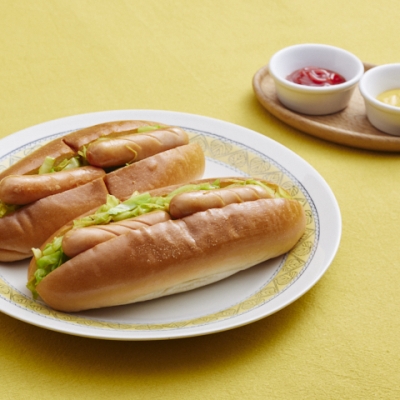 フライパンを中火にかけ、ドッグパンを並べて焼く。パンが温まったら返して表も軽く焼き、取り出す。